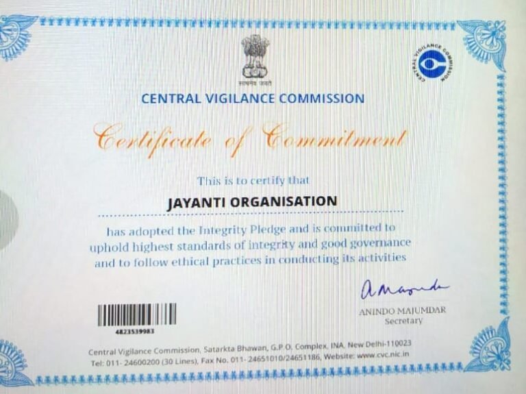 Jayanti Organisation work has been recognised by several organisations and institutions. We are thankful for their faith and belief in our services by giving us such an honour. It encourages us and instils a sense of belief that we are on the right path whilst reminding us of the great responsibility.